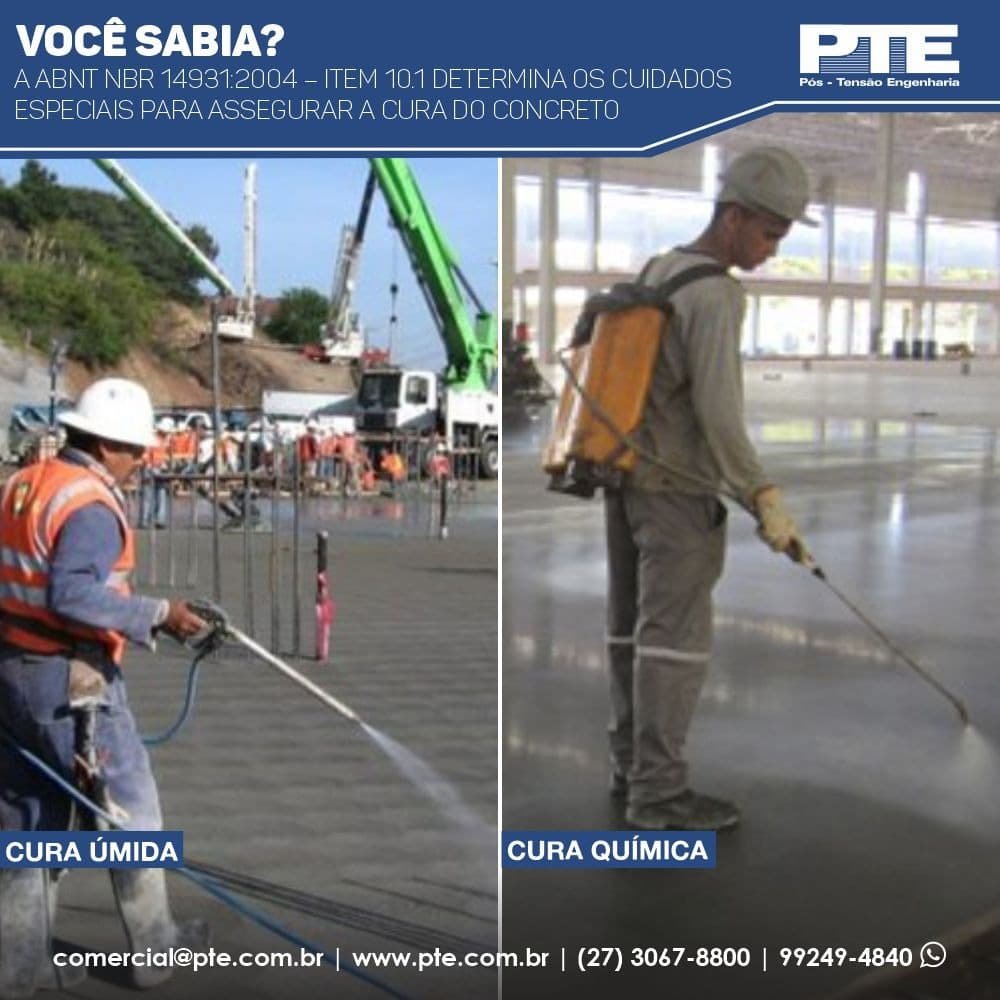 A ABNT NBR 14931:2004 Execução de Estruturas de Concreto, no item 10.1 determina os cuidados e a importância da cura do concreto, seguem informações baixo: