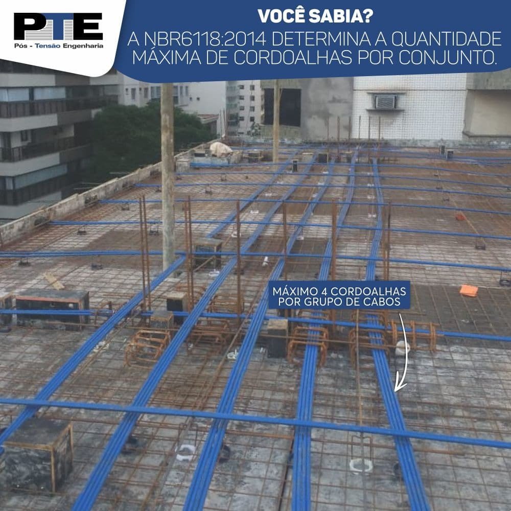 A ABNT NBR 6118 - Projeto de Estruturas de Concreto no item 20.3.2.1 - Laje de Concreto Protendido - determina o espaçamento máximo entre cabos/cordoalhas