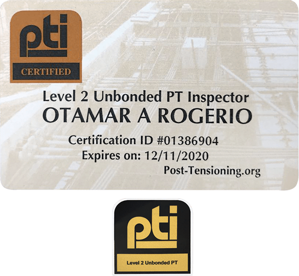 A PTE foi a pioneira no Brasil com o método de protensão não aderente, se baseando na conduta do PTI. Além disso, a PTE foi a primeira brasileira com engenheiro Certificado pelo PTI. O engenheiro Otamar A. Rogerio recebeu a certificação de Protensão Não Aderente Nível 2 Inspetor.