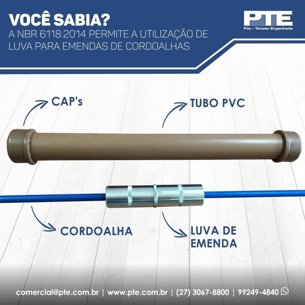 A ABNT NBR 6118-2014 Projeto de Estruturas de Concreto – Procedimento no item 18.6.1.7 permite a emenda individual de cordoalha com a utilização de luva de emenda.
